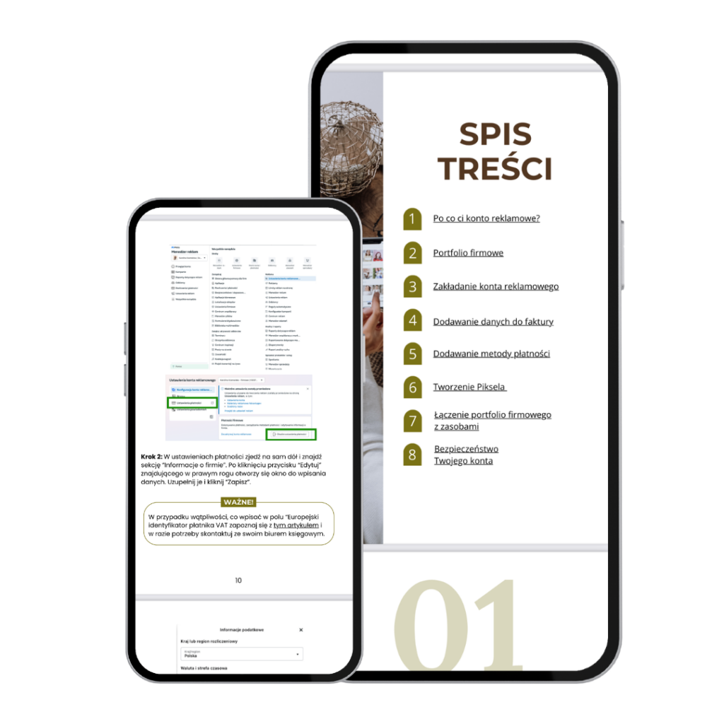 Nie do końca – e-book pokazuje głównie techniczne podstawy, czyli jak ogarnąć konto reklamowe. Ale spokojnie, to świetny pierwszy krok i solidny fundament. Jak już to ogarniesz, łatwiej będzie ruszyć dalej. A jeśli chcesz nauczyć się tworzyć reklamy krok po kroku – zapraszam na konsultację 1:1!